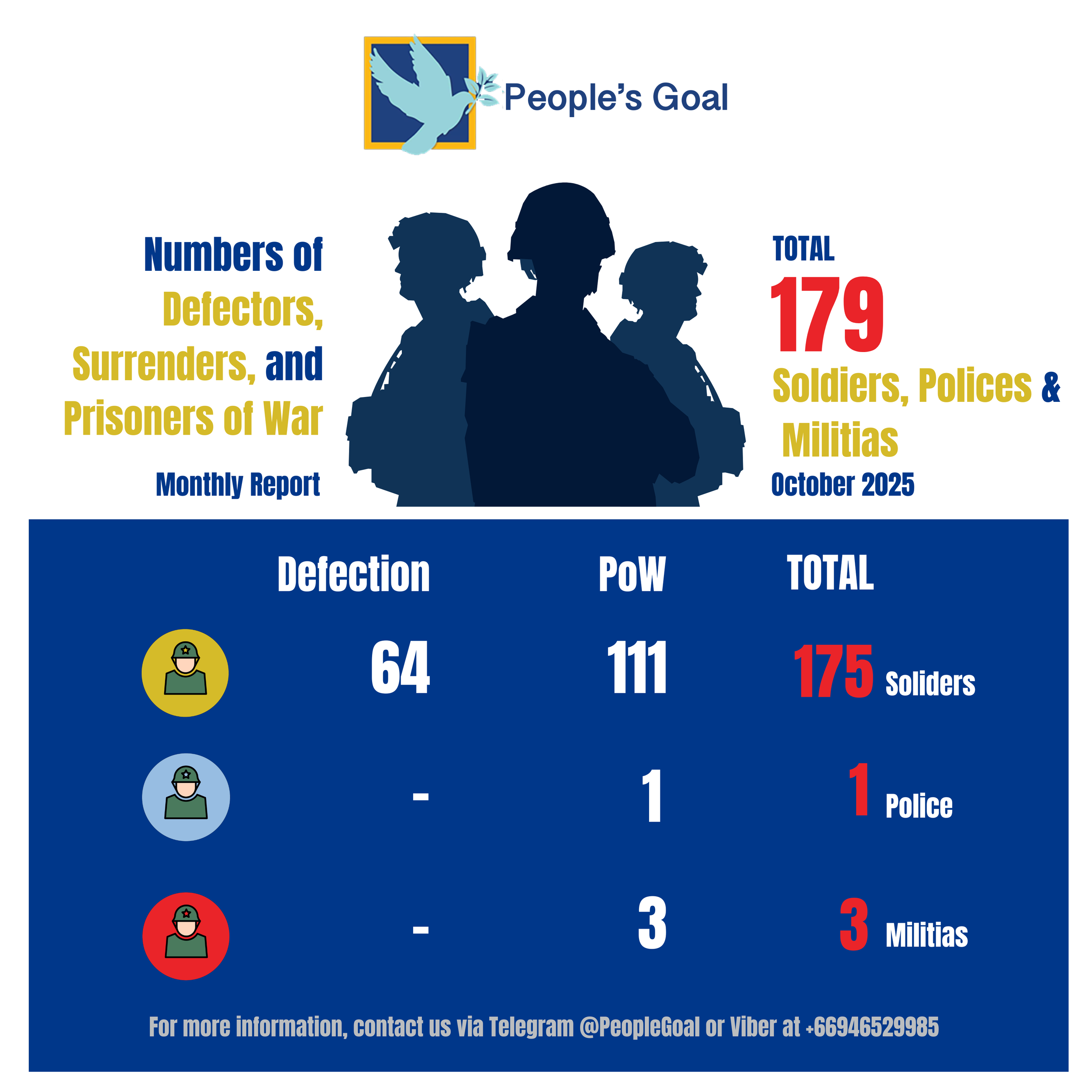 During January 2026, People’s Goal recorded 179 new cases of defections and PoWs: