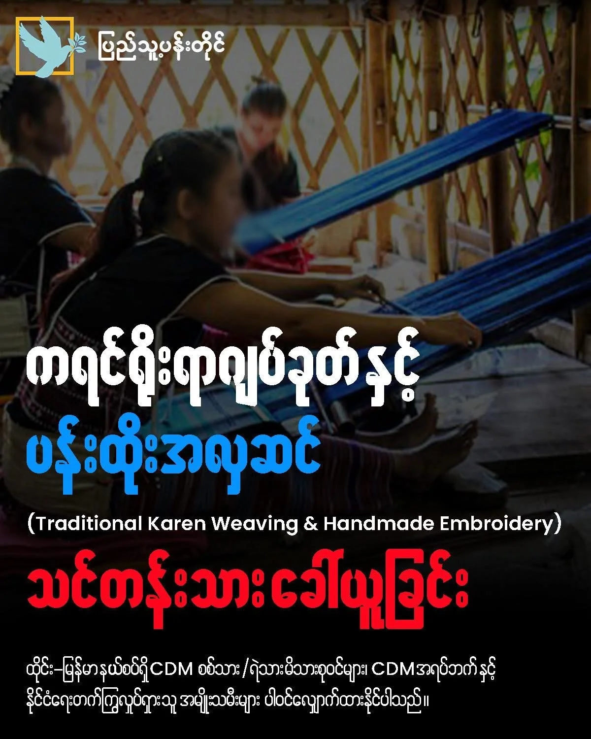 Another highlight of the month was the call for applications for the Traditional Karen Weaving and Handmade Embroidery Training. Aimed at displaced women especially female CDM members, activists, and wives or daughters of injured revolutionaries, the 16-week course will teach weaving and embroidery until participants can create their own crafts independently. This training is both cultural preservation and livelihood opportunity, giving women a way to generate income while holding on to traditions.