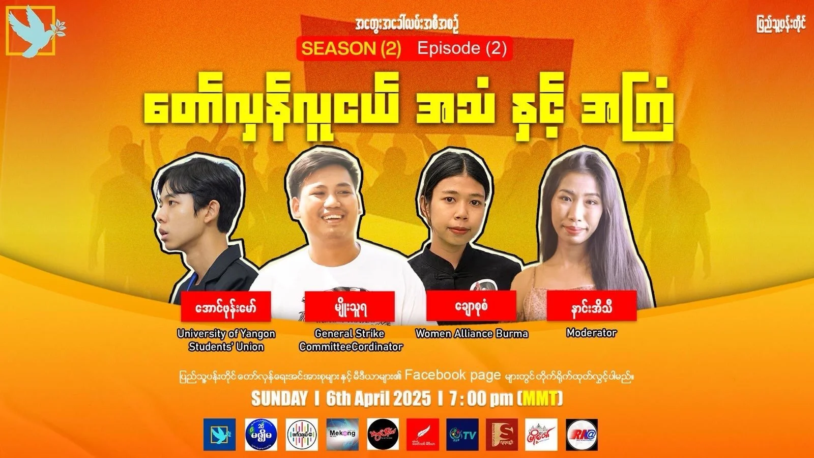 08:59-09:24 - I would like to ask some questions to Ko Myo Thura as well. Currently, the military is enforcing the mandatory conscription law. How are young people dealing with this crisis, and can you also share with us your experience as an active member of a strike committee?